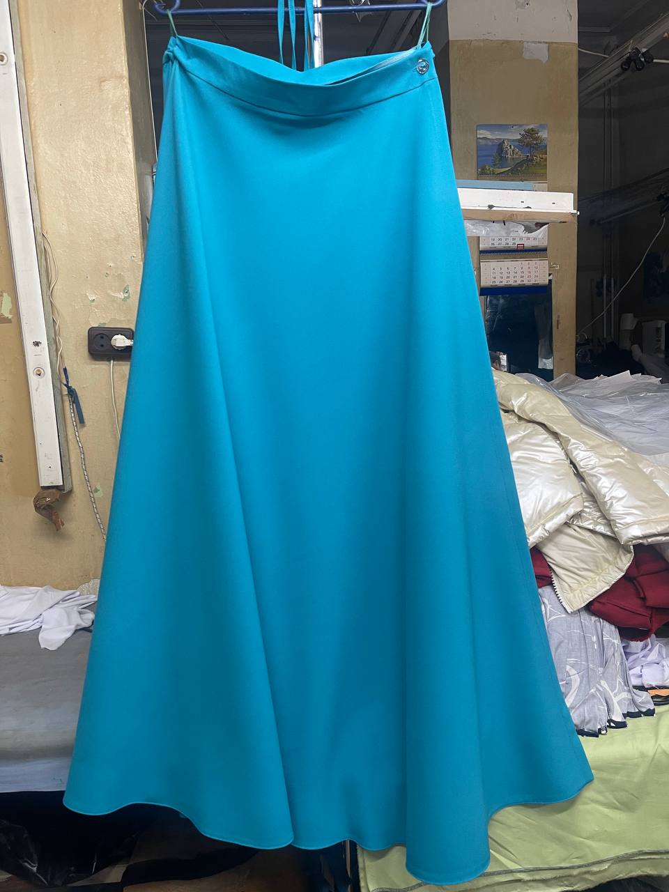Юбка фасона полусолнце с запАхом. застежка на одну декоративную пуговицу и две внутри юбки.